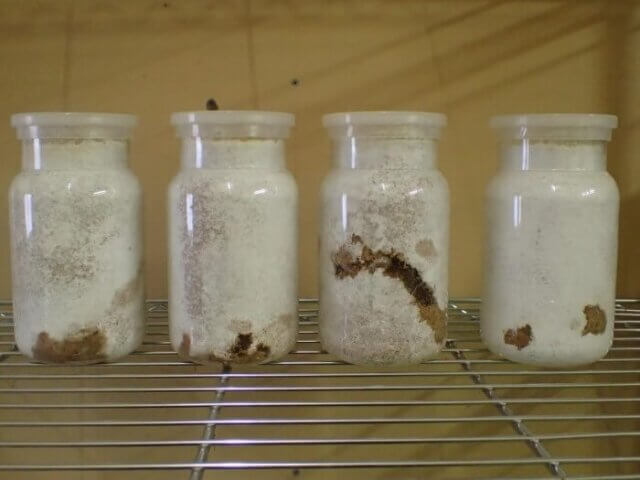 【参考画像:温度管理下の中、菌糸ビン内で育つ幼虫達】
