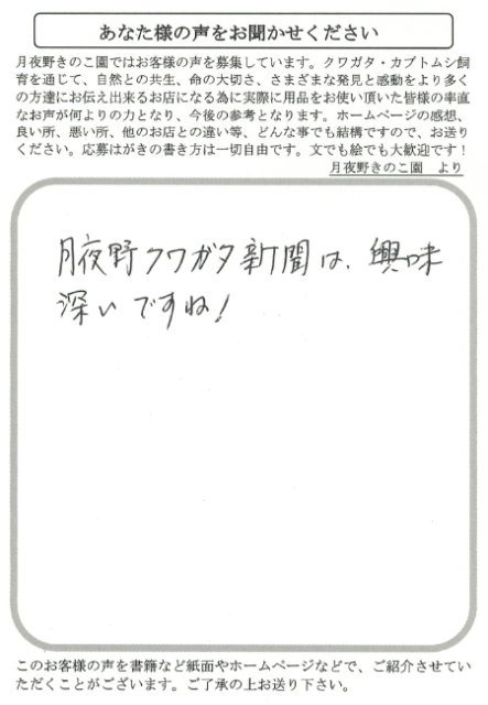 飼育情報TOP > おハガキ > ご意見・ご感想区分 > 対応 > 埼玉県 伊澤 様