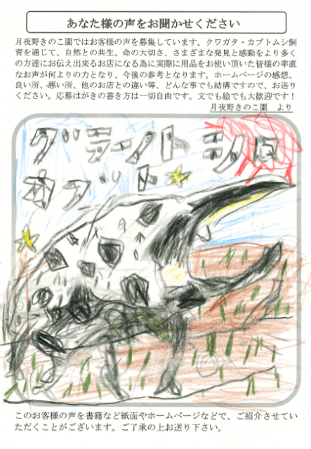 飼育情報TOP > おハガキ > ご意見・ご感想区分 > イラスト > 長野県 中村 様