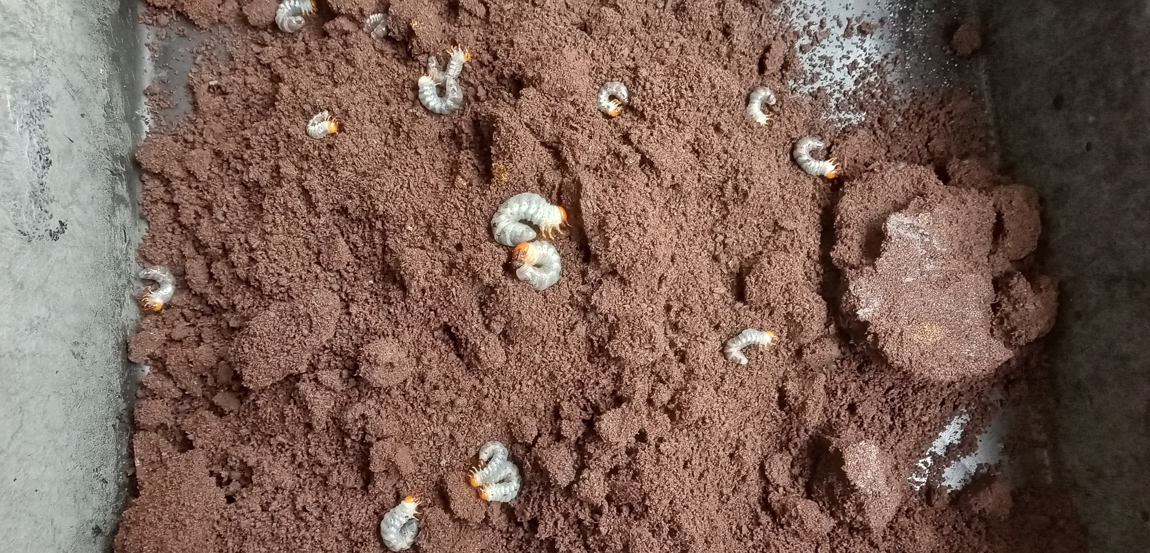 完熟マットをふるいにかけて細かいを小ケースの6割ほど固く詰め、その上にマット軽く詰めた。 1月上旬割り出した。