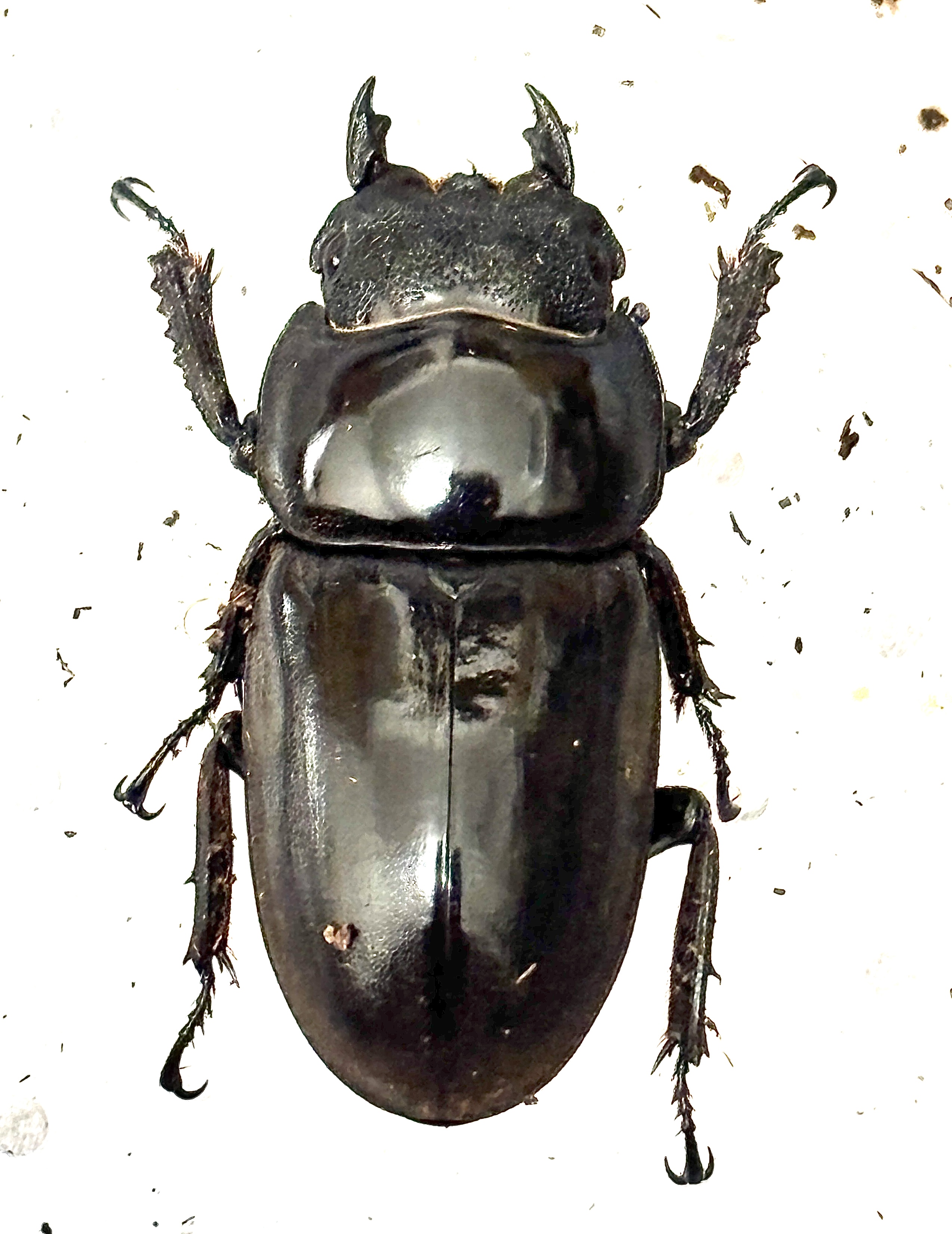 ベトナム・イェンバイ産WF1 ♂83.5㎜×♀42.0㎜ ♂2025/4/中 羽化 ♀2024/12/中 羽化 オークションにて購入。WD♀フリーサイズからの持腹個体。 2025/10に1400ccクリアボトルに顎縛り同居させ、セットをダラダラと先延ばしにしていた。